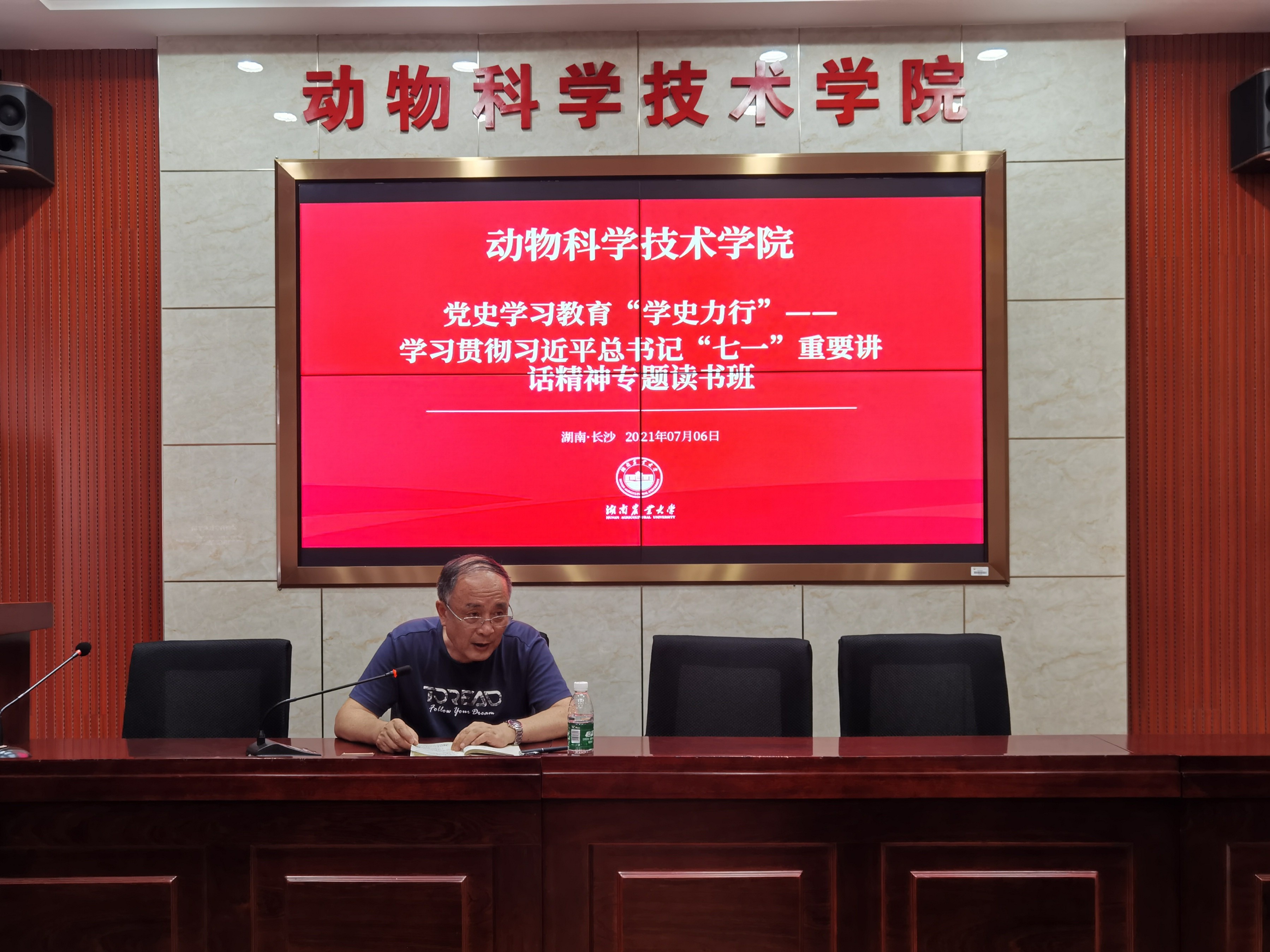 7月6日下午,动科学院党委在二教501会议室举行学习贯彻习近平总书记在庆祝中国共产党成立100周年大会上的重要讲话精神专题读书班,学院党委委员、学术委员会委员、基层组织负责人、科级干部及支部书记等参加会议,会议由王奎武书记主持。