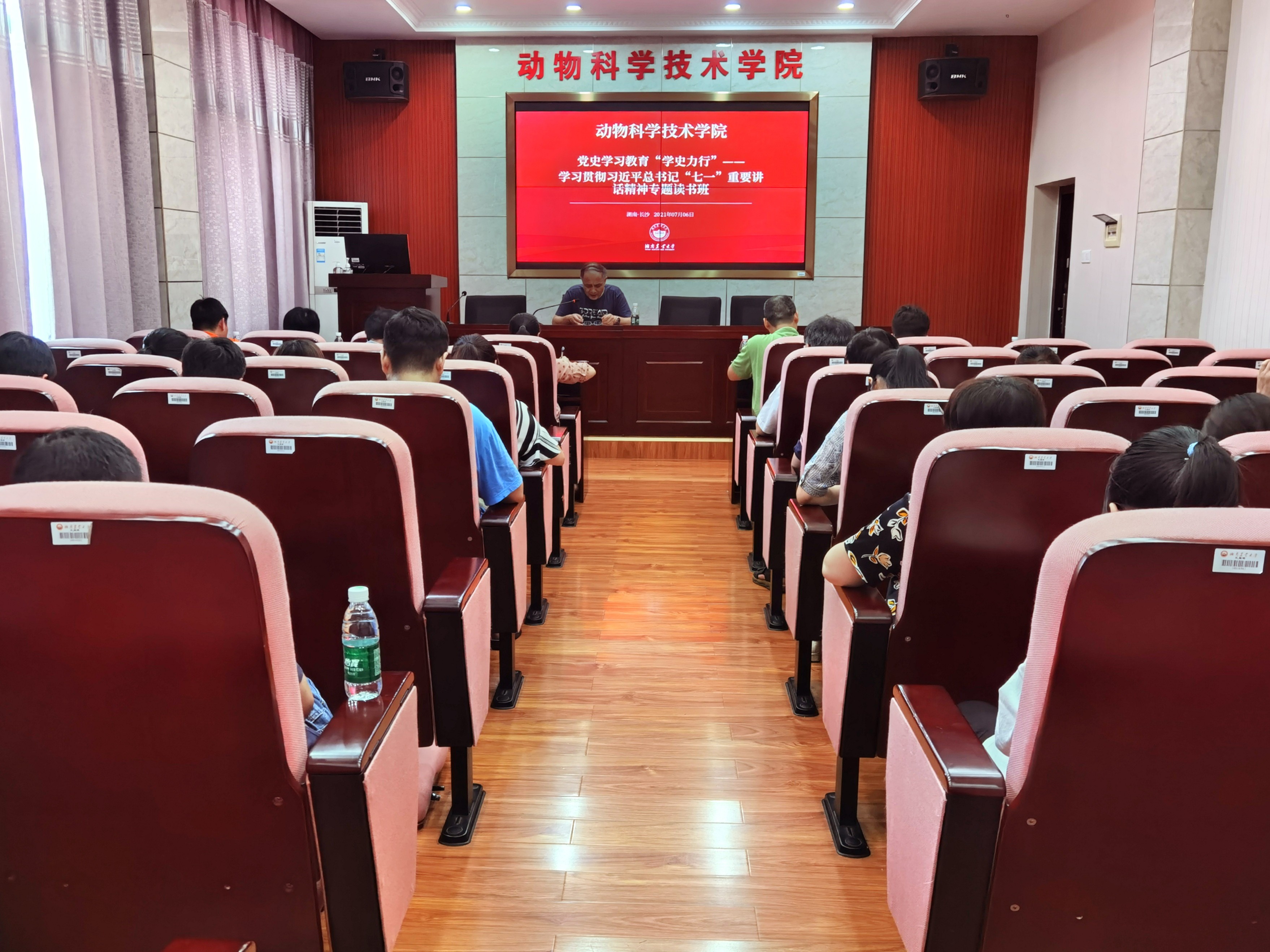 7月6日下午,动科学院党委在二教501会议室举行学习贯彻习近平总书记在庆祝中国共产党成立100周年大会上的重要讲话精神专题读书班,学院党委委员、学术委员会委员、基层组织负责人、科级干部及支部书记等参加会议,会议由王奎武书记主持。