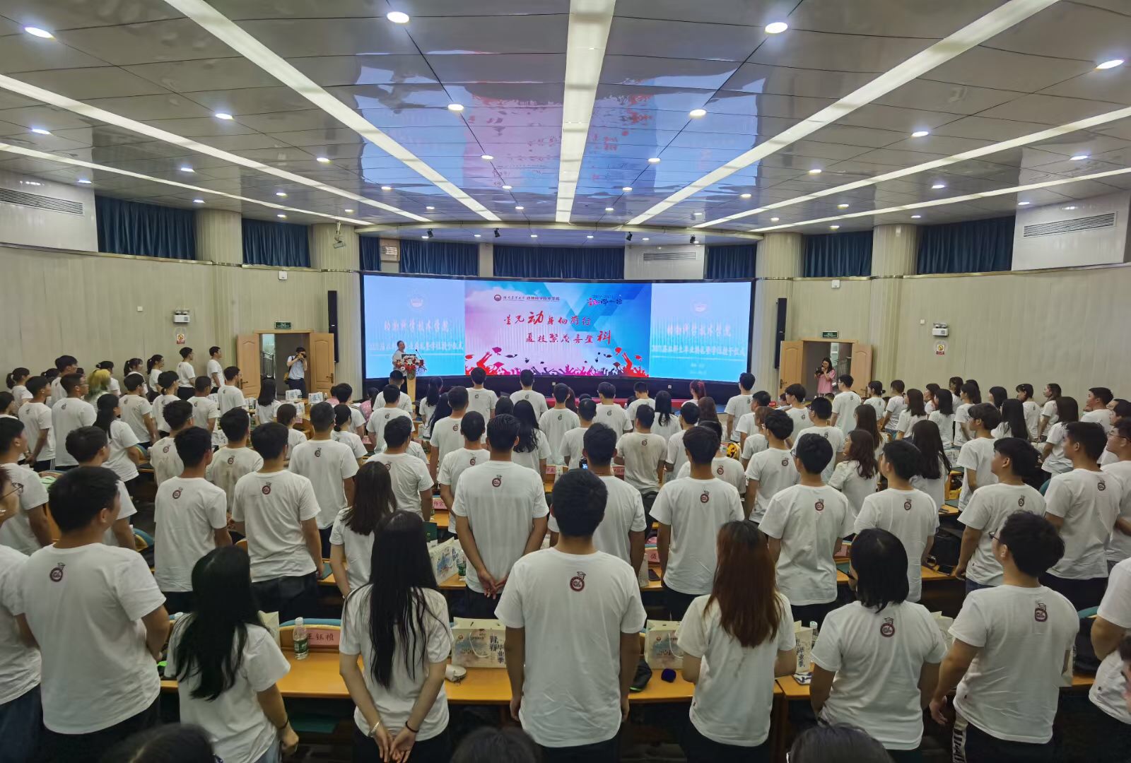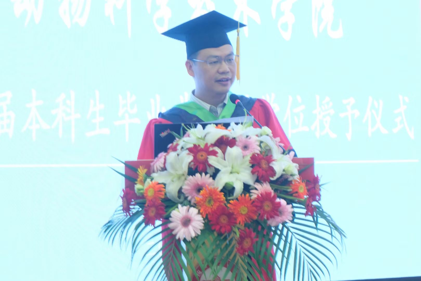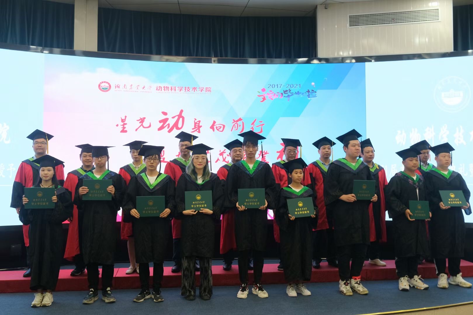 生科楼内人潮涌动,毕业典礼现场气氛庄严而热烈,全体师生共同回首过去,畅想未来,为即将离开母校的动科学子送上最真挚的祝福。