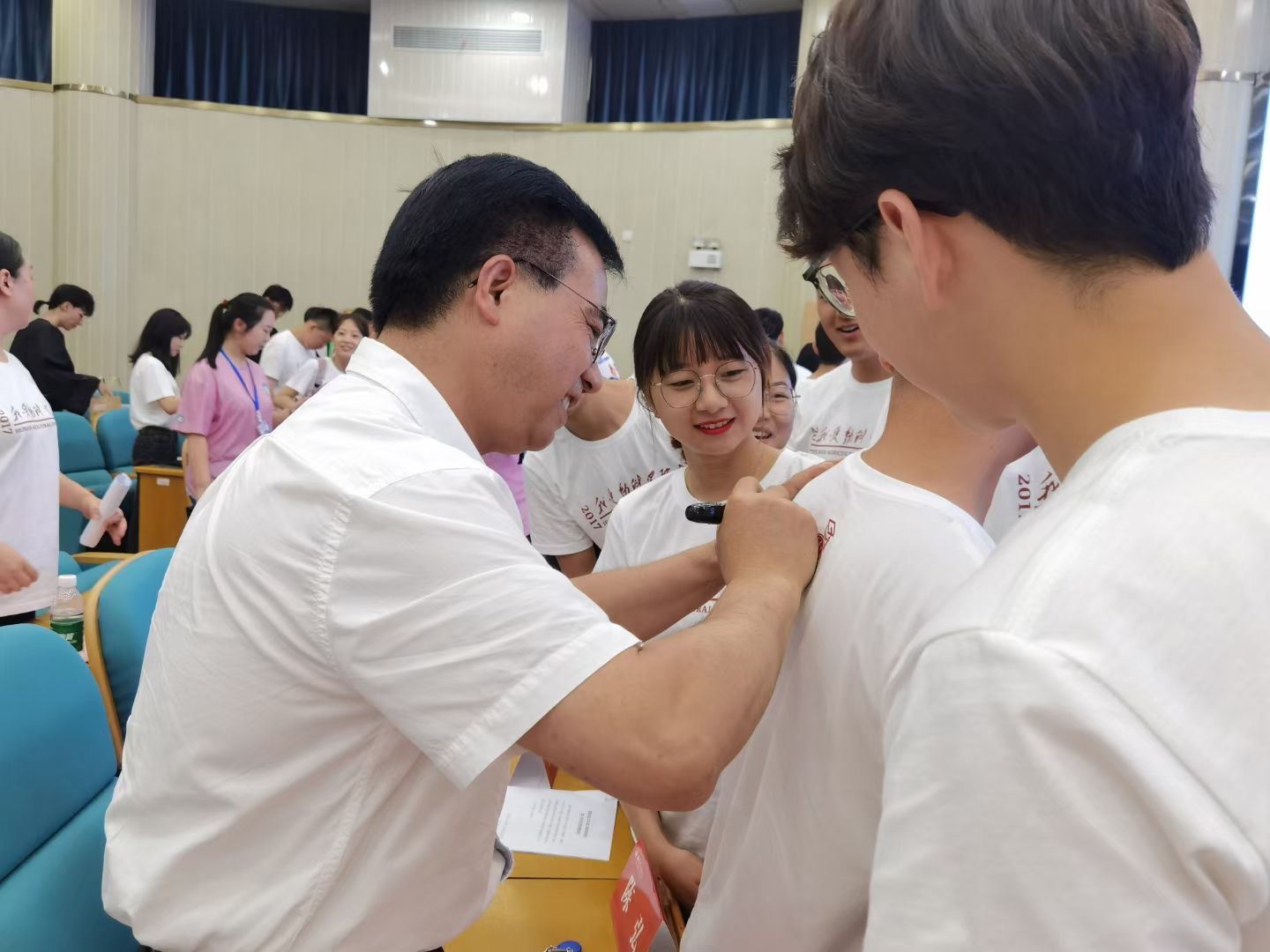 来自学院的一份礼物。恰同学少年,风华正茂,今学业有成,临别之际,动科学院为每位毕业生准备了附有印遇龙院士寄语的明信片、独具动科特色的文化衫以及意义深重的纪念徽章,它们都将成为毕业生与学院之间的信物,无论天涯海角,或是天各一方,总是有纽带将我们连在一起。