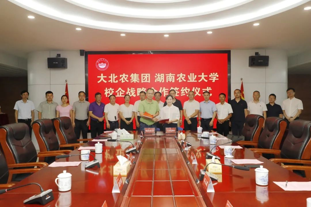 9月27日下午,大北农集团与学校战略合作签约仪式在文渊馆隆重举行。签约仪式由党委副书记段美娟主持,党委书记陈弘,校长邹学校,副校长唐圣松以及学校相关单位负责人、大北农集团常务副总裁易敢峰及集团相关部门负责人参加签约仪式。