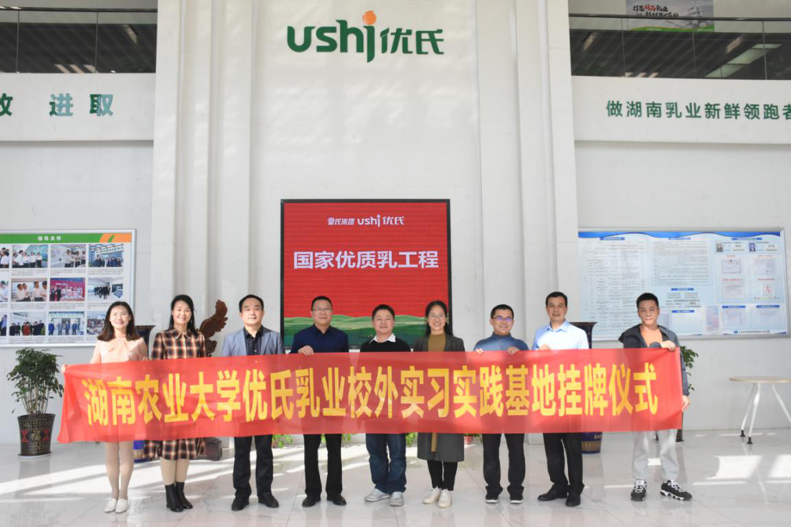 3月11日下午,我校与皇氏集团湖南优氏乳业有限公司(下称优氏乳业)共建“优氏乳业校外实习实践基地”授牌仪式在长沙市宁乡经开区皇氏集团优氏乳业工业园举行。该基地建成不仅得到了3044am永利官网和皇氏集团优氏乳业领导大力支持,还得到了国家乳业创新联盟和湖南省奶业协会的指导。国家乳业创新联盟张养东秘书长、湖南省奶业协会刘海林秘书长、3044am永利官网何俊副院长和皇氏集团优氏乳业肖松义总经理等出席了授牌仪式。