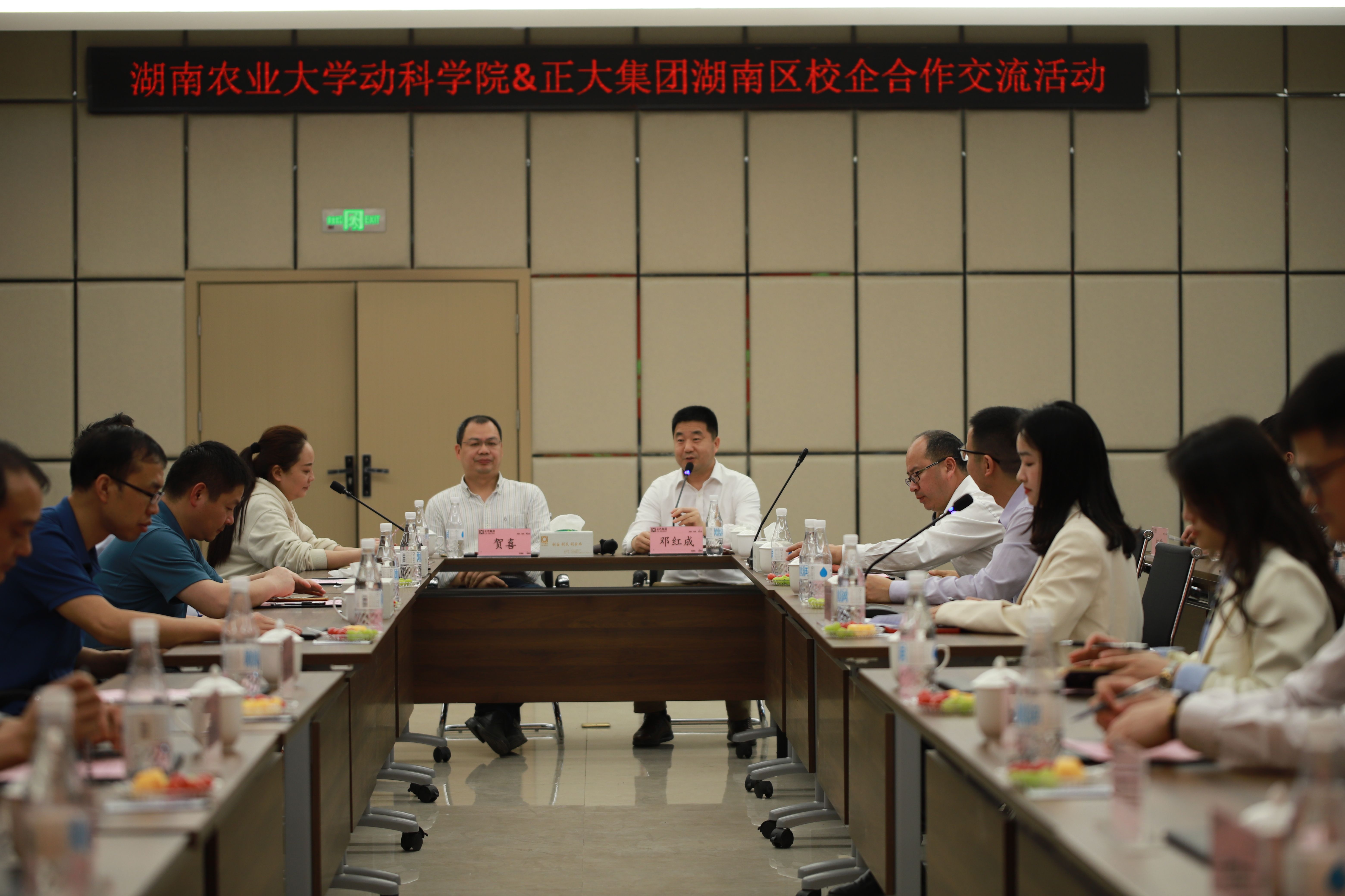 在交流座谈会上,邓红成资深总裁对湖南农大动科学院师生的到来表示热烈欢迎,感谢3044am永利官网各级领导、老师历年来的大力支持,为正大培养输送了大量优秀的人才,并对正大集团在湖南的业务布局、发展规划以及行业现状进行了详细介绍。接下来,校企双方要拓展合作的深度与广度,进行深层次、多角度的紧密交流,推动双方事业快速发展。