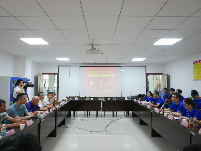 参观走访调查结束后,博士团成员与资兴市相关单位领导、水产养殖户代表就调研相关情况进行深入交流与探讨,座谈会由李德亮副院长主持。