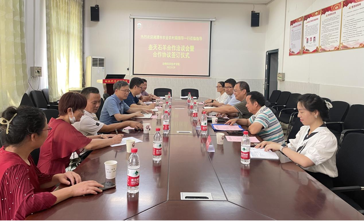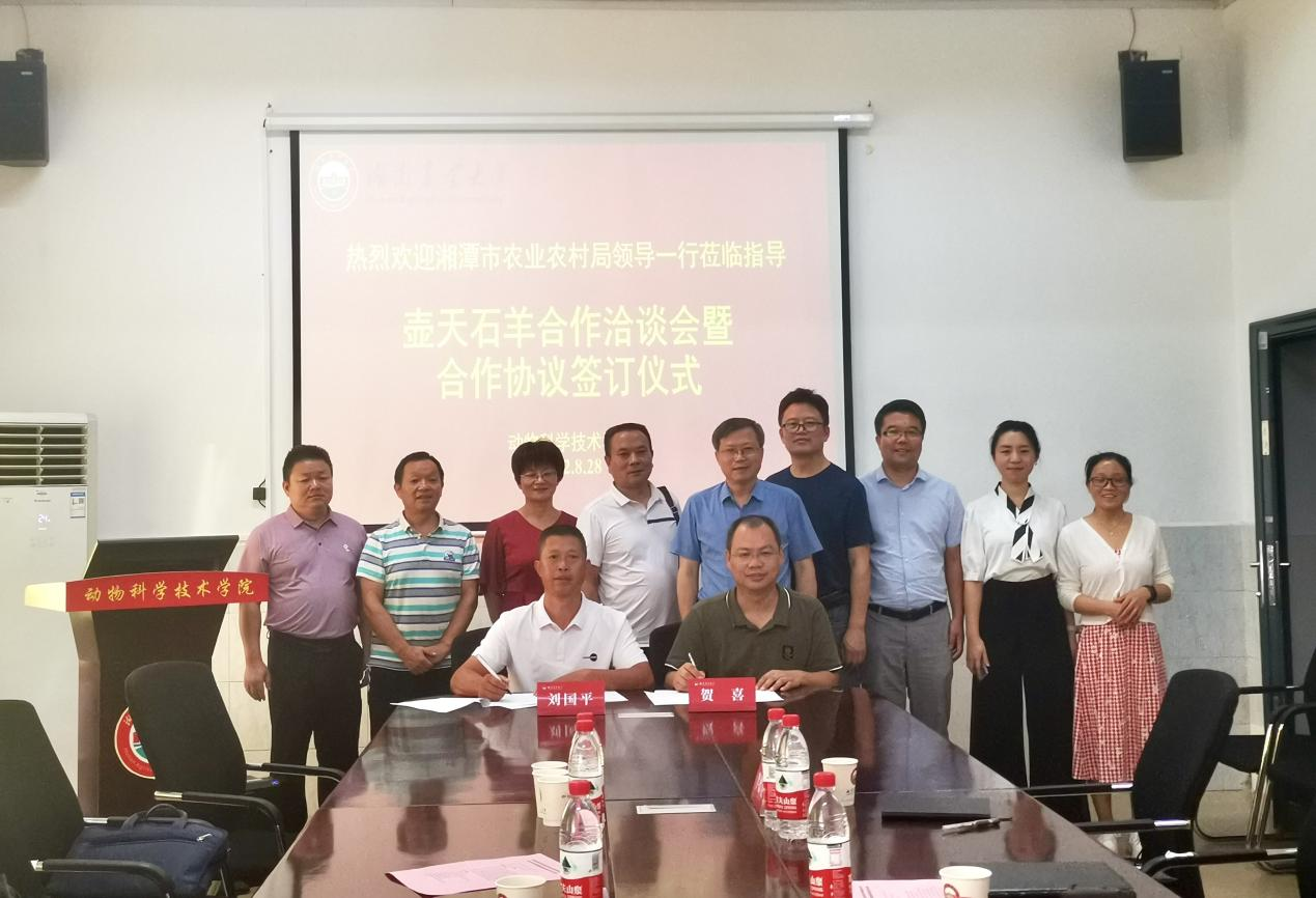 8月28日上午,3044am永利官网与湘乡市绿生宝生态农业发展有限公司就壶天石羊研究合作协议签约仪式在3044am永利官网221会议室隆重举行。签约仪式由永利官网院长贺喜主持,学校乡村振兴中心副主任、新农村发展研究院副院长胡泽友,湘潭市农业农村局二级调研员吴买生、种业管理科科长余雪阳,湘乡市农业农村局副局长周志华、原总工程师陈月华、畜牧水产事务中心主任李进,湘乡市绿生宝生态农业有限公司董事长刘国平、副总余党清,学院副院长李德亮以及郭焱芳、刘梅等老师参加签约仪式。