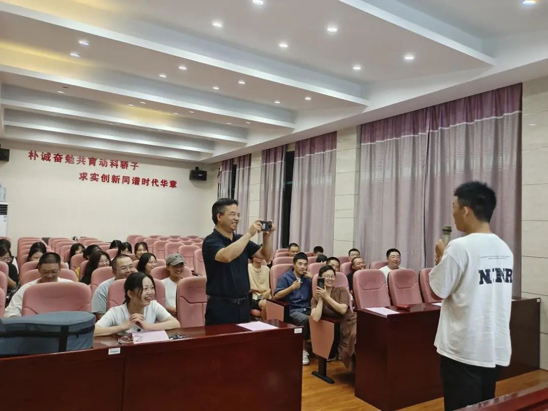 随后,陈弘书记为同学们播放了两个短视频作为入学讲座的开始。陈书记指出,机遇不会降临在没有准备的人身上,希望同学们能够在接下来的大学生活中,以全新的姿态迎接自己的大学生活,同时赠予大家“克服唯我,走出小我,超越自我,成就大我”十六字寄语。
