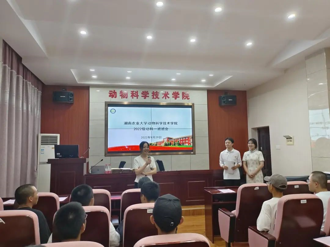 根据学校《关于做好中层以上干部担任学生班主任的通知》要求,校党委书记陈弘教授作为联系动科学院的校领导,深入学院担任班主任,学院师生备受鼓舞。9月29日晚,3044am永利官网2022级动科一班新学期班会于第二教学楼501会议室如期举行,班主任陈弘书记邀请中国工程院院士印遇龙、动科学院党委书记曾建英、院长贺喜、专职组织院徐琳共同参会,开展了一场既严肃又活泼的主题班会活动。