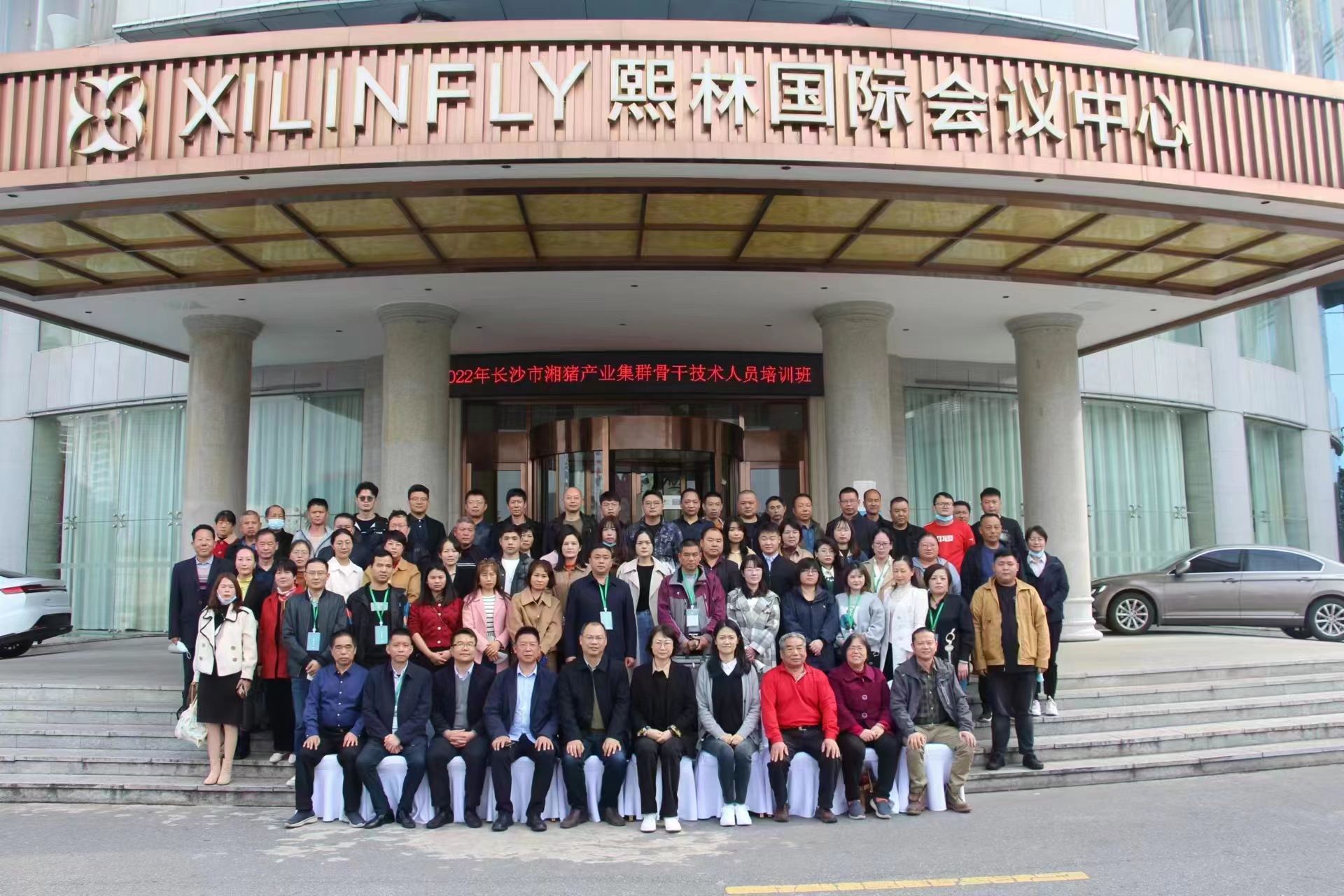 2022年11月21日,长沙市湘猪产业集群骨干技术人员培训班在熙林国际会议中心开班。该班由长沙市农业农村局主办,长沙市农业技术推广中心和3044am永利官网联合承办。来自全市各地的生猪养殖龙头企业、养殖大户的代表及技术骨干,各级行业管理人员共计70余人参加此次培训。长沙市农业农村局党组成员邓西京、畜牧处处长罗华、长沙市农业技术推广中心副主任王志明、3044am永利官网院长贺喜、副院长李德亮出席开班仪式。