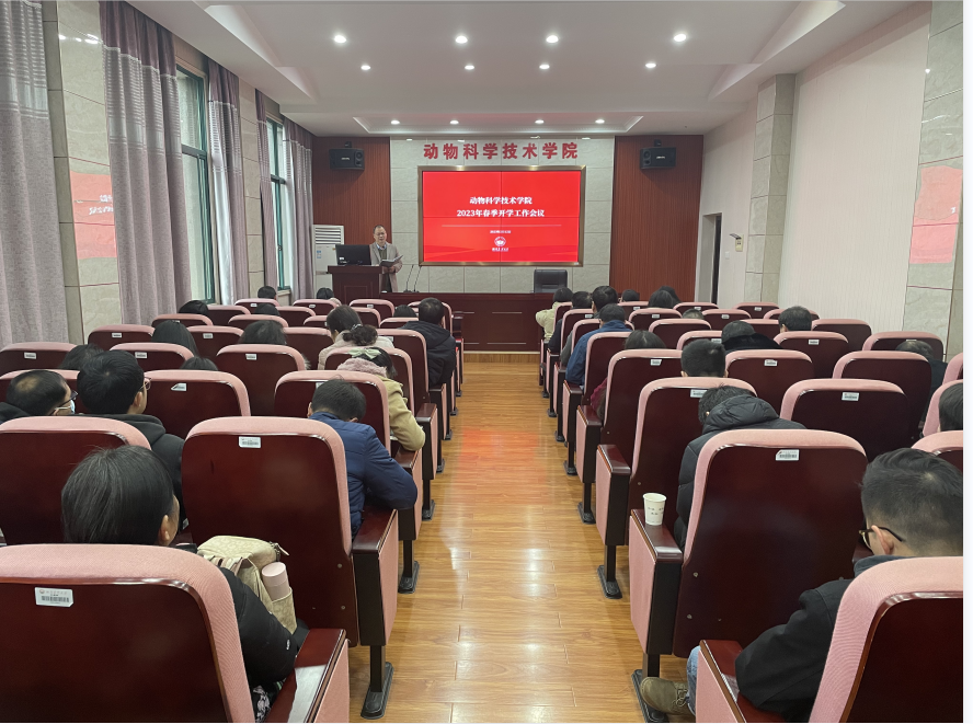 肖芬介绍了学校2023年教育教学改革发展思路及学院2023年教学工作主要内容。2023年学院将调整教学基层组织设置,加强课程团队建设,优化整合课程内容,制定课程教学大纲,以一流课程建设为重点,推进专业课程建设,提升教学质量;总结梳理动物科学专业建设成果,对标对表一流本科专业建设要求,持续推进本科专业建设与改革;健全质量监测,落实过程管理,完善教学档案建设。她对开学教学工作做了具体安排。