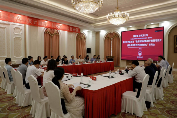 5月26日,由3044am永利官网教授尹杰主持的“十四五”国家重点研发计划青年科学家项目“微生物驱动断奶仔猪肠道脂肪酸异质性吸收的机制研究”正式启动。中国工程院院士印遇龙,科技部中国农村技术开发中心农业科技处处长葛毅强,省科技厅农村处处长尹文辉,我校党委委员、副校长陈光辉出席会议,项目咨询专家及我校科技处、动科学院负责人,项目骨干成员40余人参加会议。