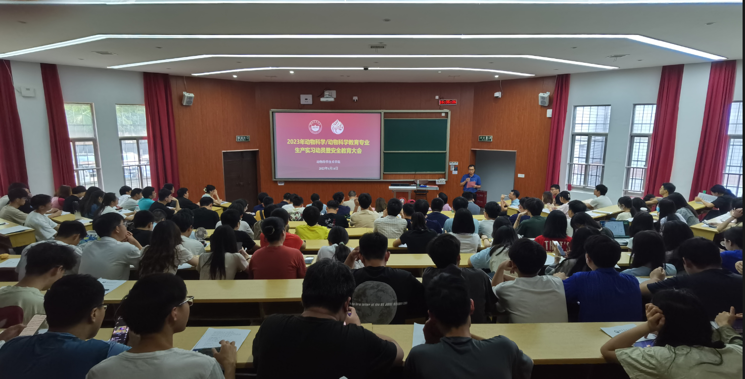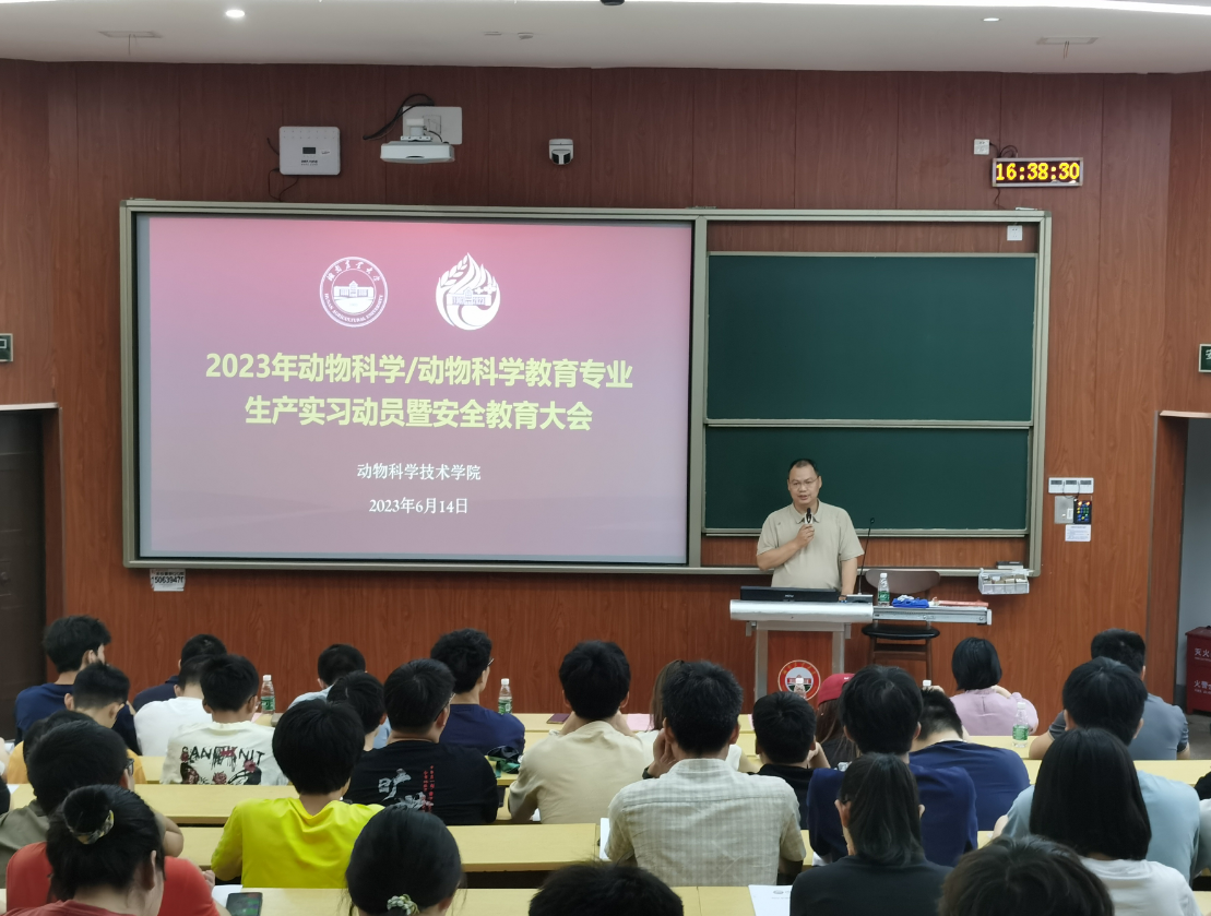 6月14日下午,动科院在新T2召开生产实习动员大会暨安全教育大会,贺喜院长、曾建英书记、肖芬副院长、指导生产实习的带队老师、2020级动物科学和动物科学教育专业的学生参加了会议,会议由智慧畜牧系主任郭松长教授主持。