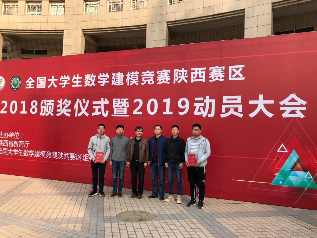 3月9日下午,“高教社杯”全国大学生数学建模竞赛陕西赛区2018颁奖仪式暨2019动员大会在西安科技大学临潼校区隆重举行,beat365官网beat365英国官网网站院长岳忠玉、创新创业学院副院长陈长征,指导教师代表张蒙及三位参赛学生代表何涛、陈升强、徐杰参加了此次大会。beat365官网在比赛中再创佳绩,荣获本科组全国二等奖2项,陕西省二等奖8项。