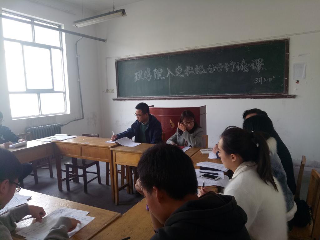 beat365英国官网网站第17期入党积极分子讨论课于3月10日下午2点在教学北楼409教室举行,学院的党支部书记曹建波主持了本次讨论课,参加讨论的有beat365英国官网网站第17期入党积极分子和5位教职工入党积极分子。