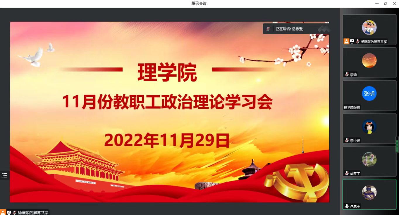 2022年11月29日下午,beat365英国官网网站党总支召开2022年11月份教职工政治理论学习研讨会。人文学院党总支书记杨光、统战部综合管理科科长高雯宇旁听会议,beat365英国官网网站党总支二级中心组成员、全体无课教师参加线上会议,会议由总支书记李小光主持。