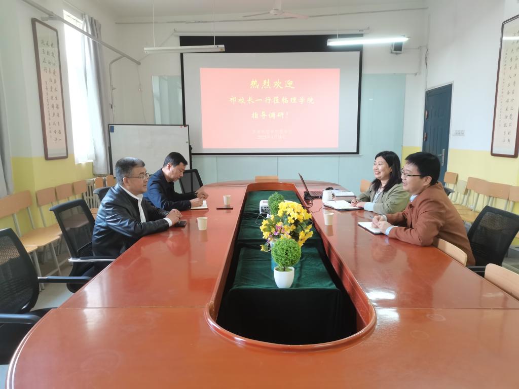 4月10日下午,校长祁玉龙莅临beat365英国官网网站调研指导工作,并召开座谈会,党政办公室主任李永刚随行。beat365英国官网网站院长李小光、党总支书记胡红亮、综合办公室主任等参加座谈会。