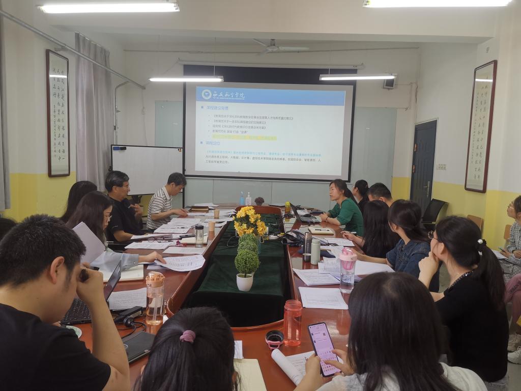 为全面落实立德树人根本任务,推动课堂教学革命,建设适应新时代要求的一流本科课程,beat365英国官网网站于2023年6月9日在莲湖校区教学南楼428室开展了一流课程开题答辩、研讨活动。活动邀请了陕西科技大学蔺小林教授做特别指导,学院一流课程评审委员和部分教师参加,院长李小光主持。