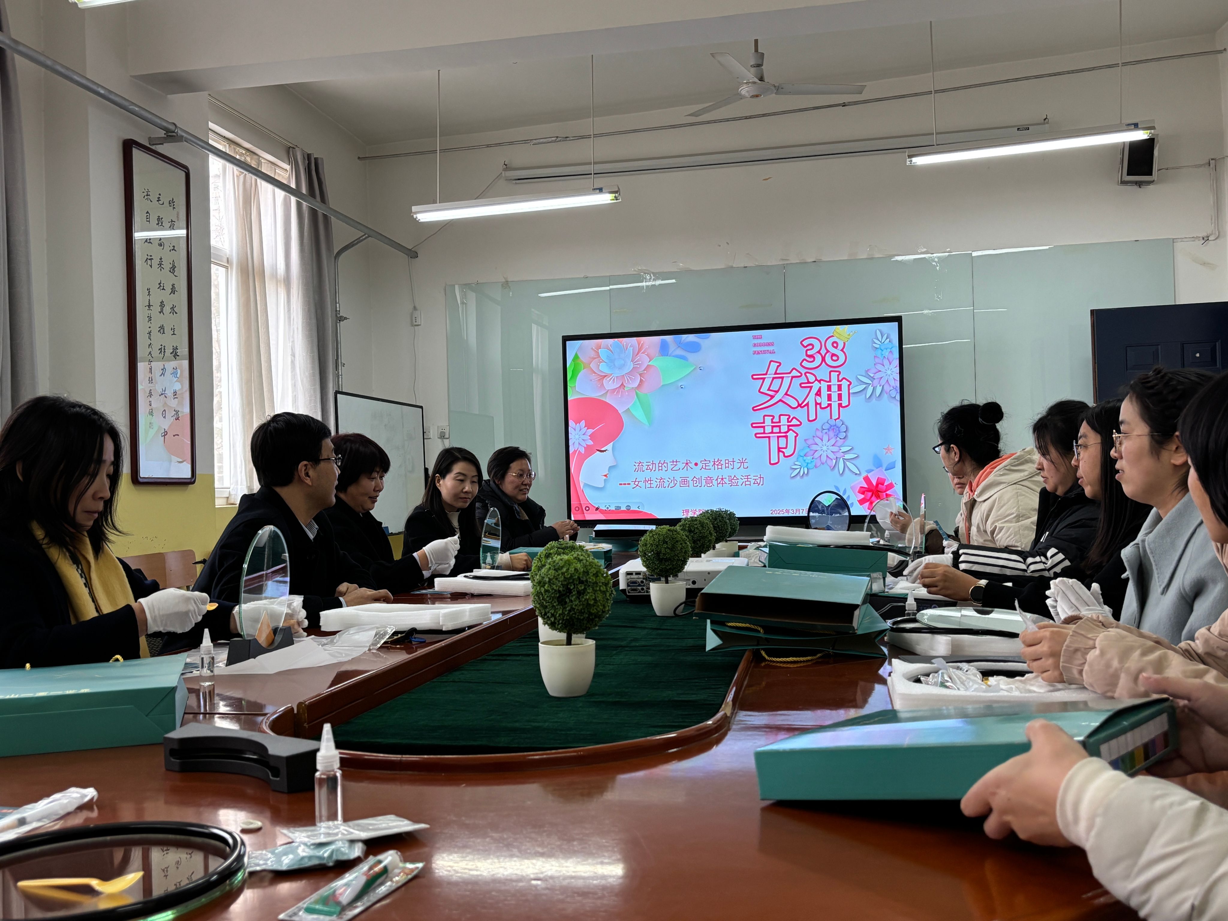 为庆祝“三八”国际妇女节,丰富女教师的精神文化生活,3月7日,beat365英国官网网站分会组织女教师在南428开展了“流动的艺术·定格时光—女性教师流沙画创意体验”活动,吸引了众多女教职工积极参与,现场氛围温馨而欢乐。