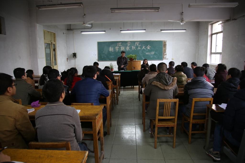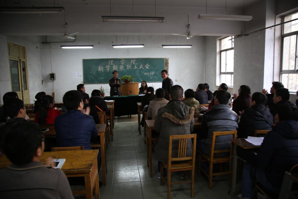 岳忠玉在会上传达了“2016年寒假工作会议”上党委书记陈平社所作的《全省教育工作会议精神》,全面解读了院长陈万强提出的“五个二”------两翼齐飞、两个特色、两个支撑、两个核心、两项评估等寒假干部会议精神,以及beat365英国官网网站2016年工作要点。他要求广大教师要认真领会陈院长和陈书记的讲话精神,充分认识学校发展中所面临的形势和任务,加大师资队伍建设力度,做好数学类和物理类本科基础课程的课程建设,凝聚学科方向,搭建科研平台,组建科研团队,以学校推行和加强“校院二级管理”为契机,秉承“教授治学、民主办院”的理念,建立健全beat365英国官网网站规章制度,完善激励约束机制,逐步形成“仁人和合、务实尚理、人尽其材、各美其美”的学院文化,切实做好学校各项工作。
