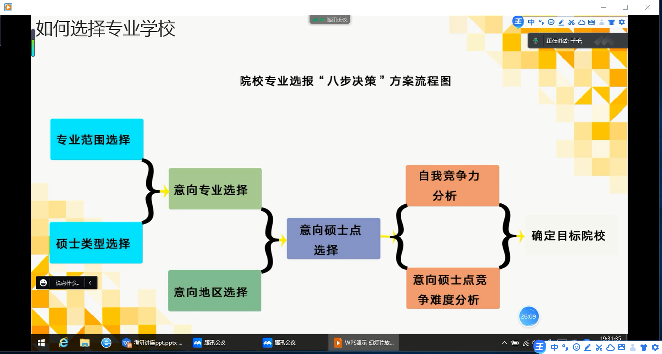 此次线上讲座的举办有利于使学生意识到考研的重要性与紧迫性,也让学生了解了本专业的现状,熟悉了考研经验和正确的考研方法,为学生以后的研究生考试打下基础。