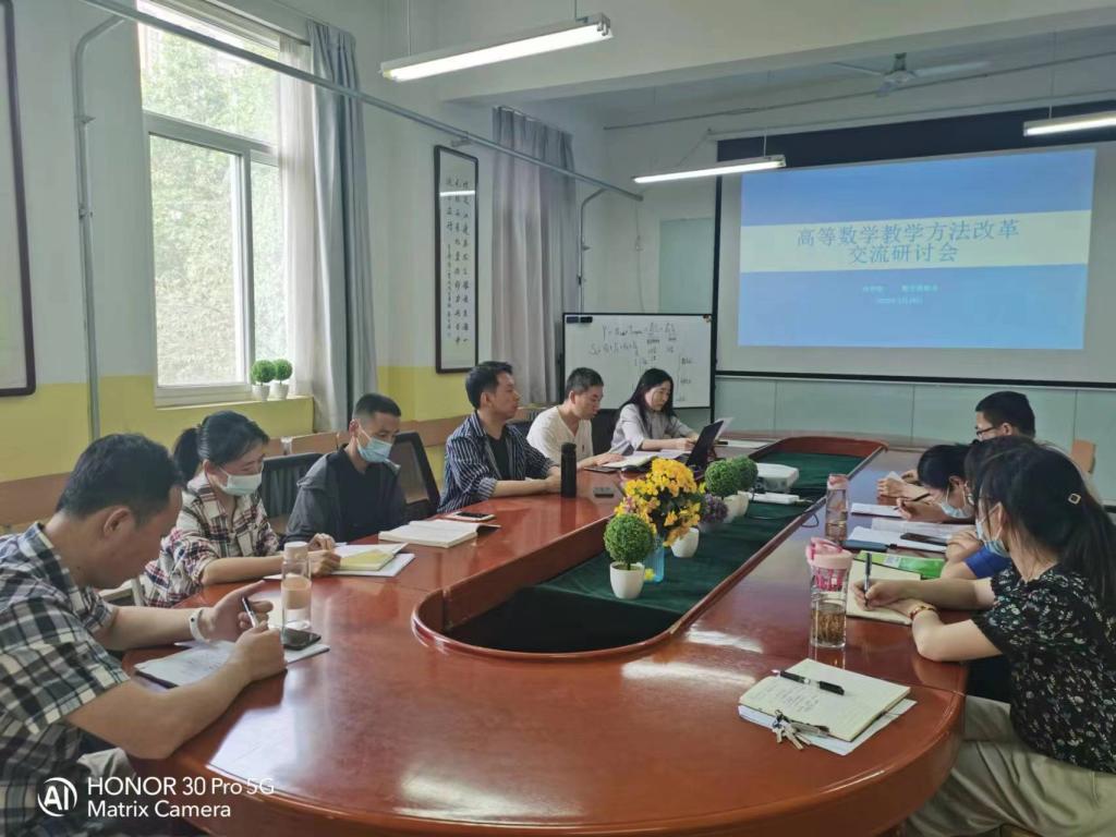 为了促进高等数学教学改革,提高教育教学质量,5月19日下午,beat365英国官网网站数学教研室组织召开了教研室活动---高等数学教学方法改革交流研讨,讨论了在23版人才培养方案下高等数学课程内容的变化及教学对策。会议由数学教研室主任周千主持,会议邀请了校级教学督导韩慧蓉老师、物理教研室主任王小梅老师参加,数学教研室高等数学团队全体教师参加了会议。