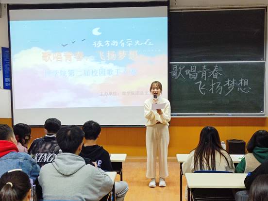 为繁荣校园文化生活,努力营造积极向上、健康文明的校园文化氛围,2021年10月13日晚7点,beat365英国官网网站于南楼308教室举办了第二届“歌唱青春,飞扬梦想”校园歌手大赛,大赛评委为beat365英国官网网站团总支书记张岩老师及院团学组织各部门学生代表。beat365英国官网网站大一大二90余名同学参加,活动由武瑜佳主持。