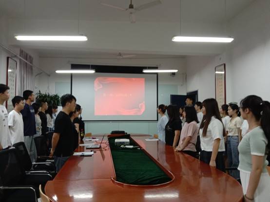 2021年6月23日下午六点三十分,beat365英国官网网站学生党支部于南楼428会议室进行第九期预备党员入党宣誓仪式。