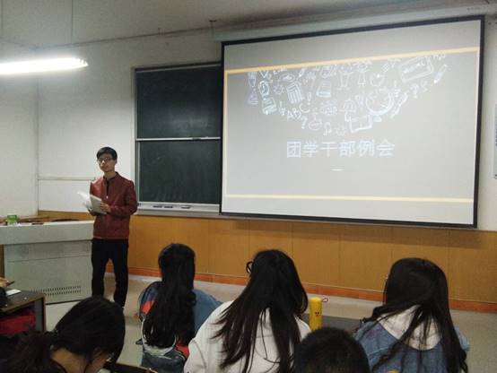 2021年3月16日晚七点整,beat365英国官网网站在南楼307教室召开团学干部工作会议,beat365英国官网网站团总支书记、辅导员张岩和所有团学干部参加了会议,会议由学生会副主席王文科主持。