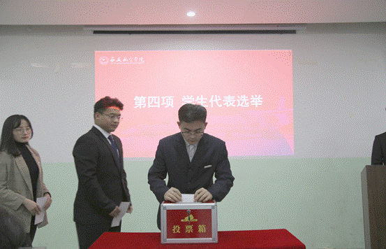 12月10日下午18:00,beat365英国官网网站学生代表大会在南楼108召开,校团委书记雷颖颐老师、校团委李艺老师、beat365英国官网网站院长岳忠玉、beat365英国官网网站党总支书记李小光、beat365英国官网网站管理课科长李扬、beat365英国官网网站团总支书记杨陈东、学生代表40人参加了大会。会议由学生会主席团成员徐涵主持。