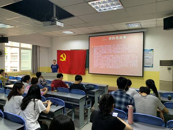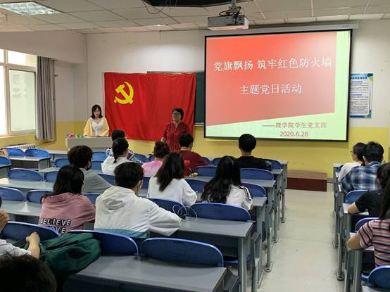beat365英国官网网站学生党支部于2020年6月28日下午4:30在教学南楼408开展“党旗飘扬筑牢红色防火墙”主题党日活动,主要由党支部书记李扬给大家讲党课。