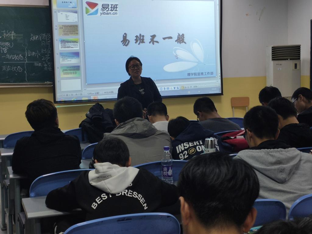 大一新生在李扬老师和易班负责人的安排下,签到入座。七点整,宣讲会正式开始,首先李老师对易班做了简单介绍,随后易班负责人张俊杰,曹子春以PPT的方式为同学们详细讲解了易班的概念,作用以及易班初步的使用方式,并为同学们解决易班使用方面的疑问。最后,李老师要求大家积极给易班投稿,并使用易班了解学院、学校及陕西省高校的学生活动。会后,在易班负责人的带领下,大一全体学生下载易班APP,并尝试在易班APP上签到。