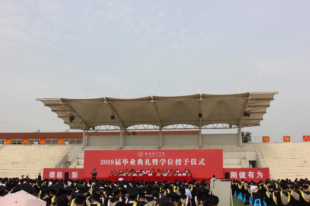 毕业典礼在庄严雄壮的国歌声中拉开帷幕。校长曹庆年亲自为全体毕业生扶正流苏,拨穗授位。全体毕业生用一次又一次热烈的掌声表达对母校的眷恋和对未来的期盼,2019届学子带着的母校的祝福,走向未来的征程。(文、图/beat365英国官网网站 潘灵刚)