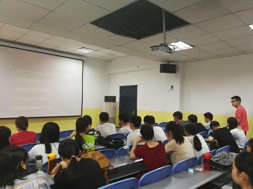 2019年6月26日,beat365英国官网网站学生党支部于南楼408教室开展“忆初心、宣誓言、庆祝建党98周年”主题党日活动,参加活动的有beat365英国官网网站学生党支部全体成员。活动由beat365英国官网网站学生党支部委员李扬主持。