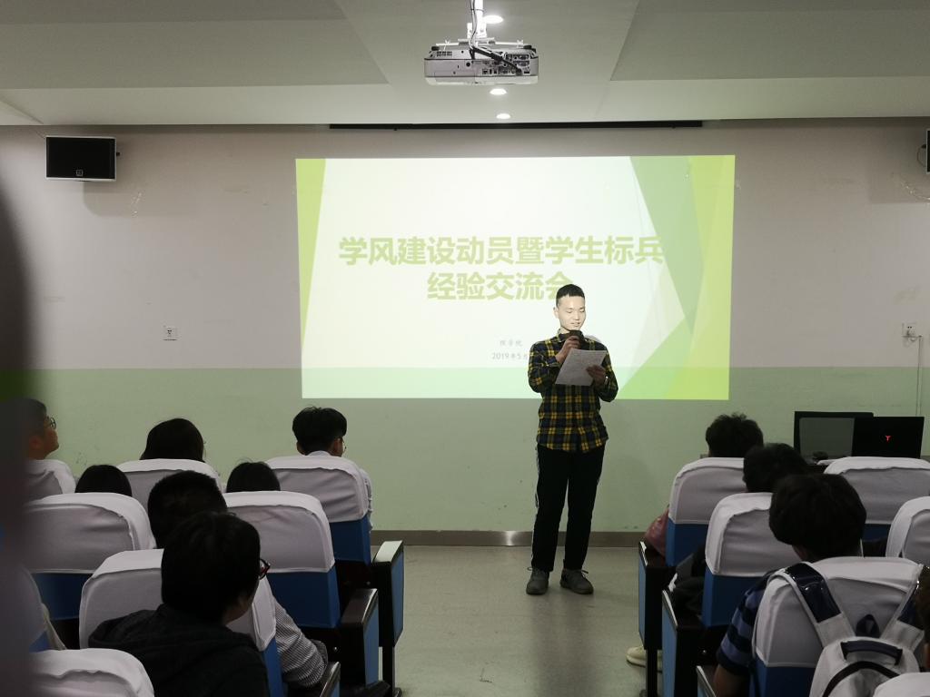为了教育引导学生回归常识,把主要精力投入到学习上,2019年5月14日下午,beat365英国官网网站在教学南楼108召开学风建设动员暨学生标兵学习经验交流大会,学生管理科科长李扬、辅导员杨陈东和全体大一大二学生参加了会议。会议由李扬主持。