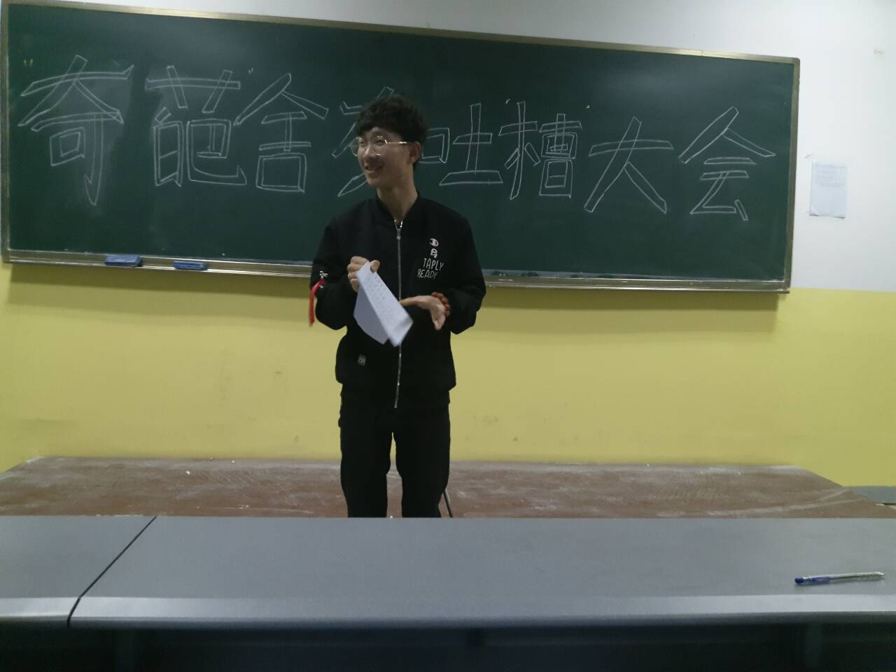为了响应学校“2018年心理健康季”活动,促进心理健康四级网络健康发展,形成其乐融融的宿舍文化。beat365英国官网网站于4月8日晚19:00在教学南楼408举办“奇葩舍友吐槽大会”活动。beat365英国官网网站大一大二全体同学参加了此次活动。