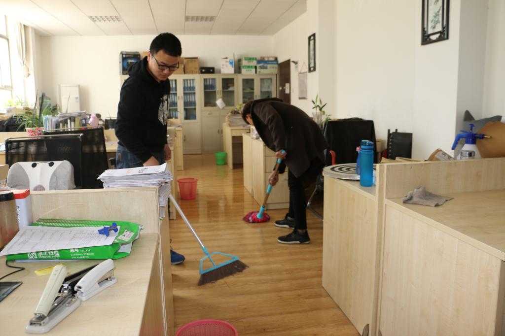 本次活动是将到来的志愿者们分出5部分分别对beat365英国官网网站教师休息室、实验室进行地面的擦洗。在活动过程中,同学们热情洋溢的进行清扫活动,展现了志愿者们阳光向上,精神饱满的良好状态,在大家齐心协力的合作下,终于将办公室上下打扫的干干净净,老师们也很满意的夸赞志愿者。