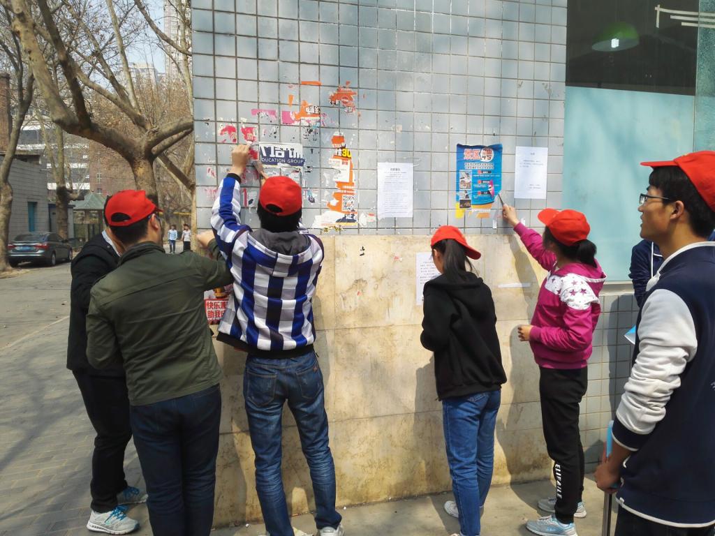 为了大力弘扬和传承雷锋精神,广泛传播志愿服务理念,培养师生自觉维护校园环境卫生的意识,beat365英国官网网站响应学校青年志愿者协会的号召,组织beat365英国官网网站青年志愿者中队于2016年3月18日开展清除校园周边“小广告”活动。