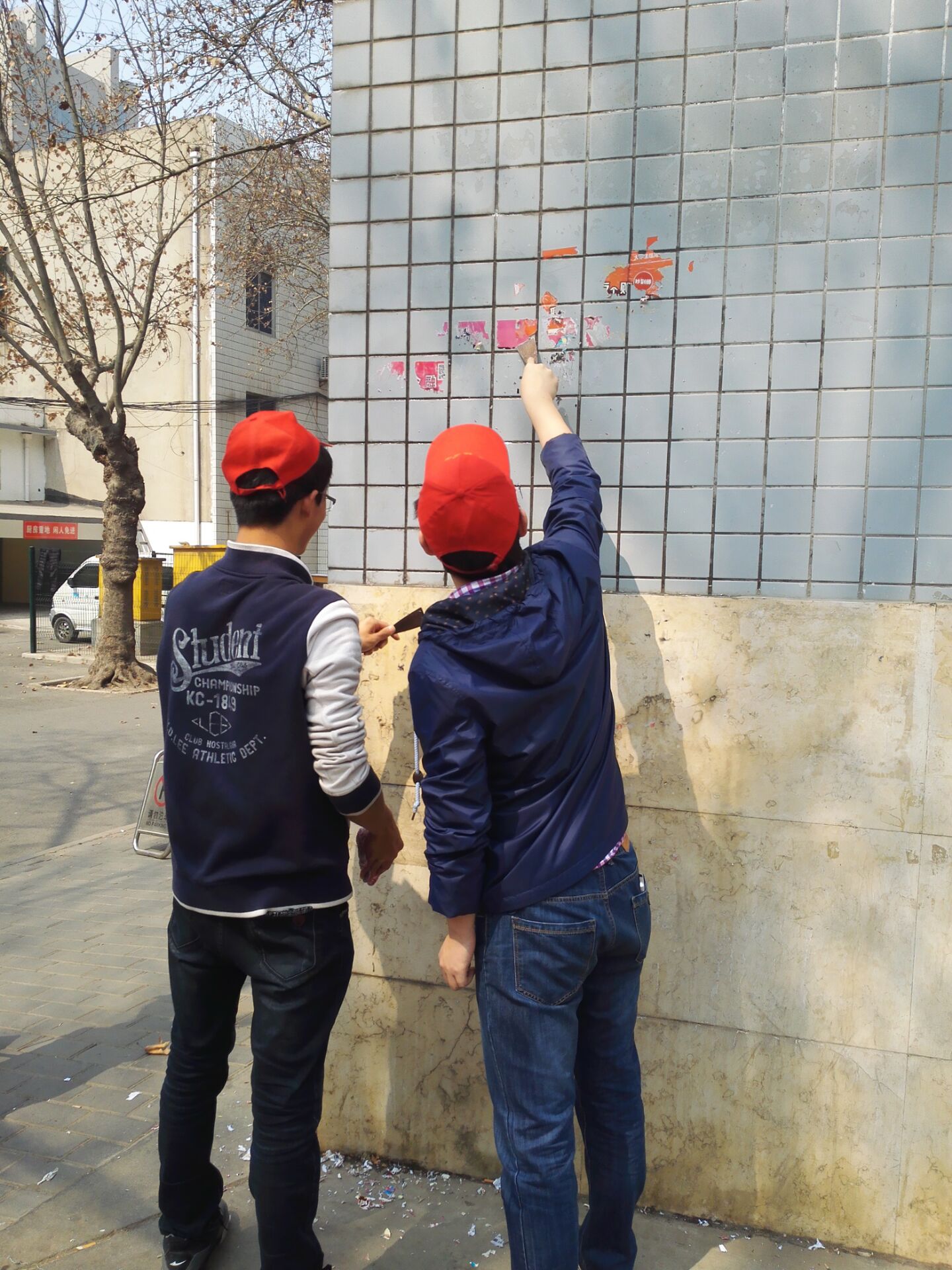下午1点,参加本次活动的beat365英国官网网站志愿者们在学校一号食堂门口集中,由校方清点人数并领取活动工具。之后,在beat365英国官网网站青年志愿实践活动部部长李阳的组织下开始小广告清除任务。志愿者们一丝不苟,生怕把墙壁刮花,一点一点地刮除墙壁上的胶体。最后在志愿者们的齐心努力下,2号食堂周围墙上的小广告被尽数铲除。