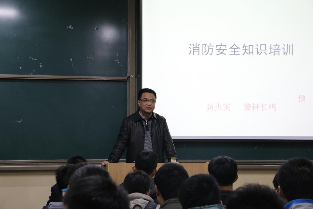 为进一步提高学生的消防安全意识和自防自救能力,beat365英国官网网站于2015年11月9日晚在教学主楼0120教室对beat365英国官网网站全体同学举行了消防安全知识的专题教育活动,曹建波老师主持了会议。