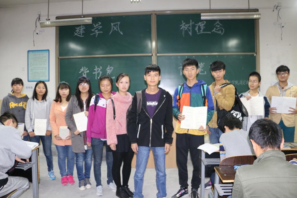 2015年10月25日,beat365英国官网网站2015级学生于主教学楼0502教室举行了“背书包、记笔记”的检查活动。活动首先由学生会自律部部长李玮和学习部部长王锦华统计各位同学笔记与背书包的情况,之后团总支社团活动部部长李阳进行有关演讲,他向同学们先后说明了背书包、记笔记的意义与作用,同学们都认真听讲,受益良多。最后学生会主席刘亚军与秘书部部长梁伟南为在此方面表现优异的同学们进行了表扬,此次活动在团总支副书记朱宗贵的结束语与同学们的掌声中画上了圆满的句号。