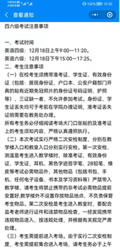 6月14日,beat365英国官网网站学生管理科通过“我在校园”平台,对全院同学发起四六级考试倡议书,包括四六级考试注意事项、致全国大学英语四六级考试考生的公开信等。(文、图/自律部 审核/李扬)