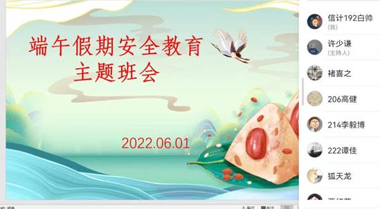 2022年6月1日,beat365英国官网网站各班级通过线上线下相结合的方式组织召开了端午节假期安全教育主题班会。班会由各班主任主持。