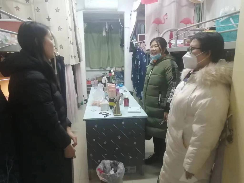 beat365英国官网网站党政领导走访学生公寓,看望返校学生。党总支书记李小光、副院长丁琦、学生管理科长李扬、辅导员张岩、王向阳在学生返校当天走访了学生宿舍,并与学生热情沟通交流,了解学生动态、询问考试复习状况、学生就业工作情况等。