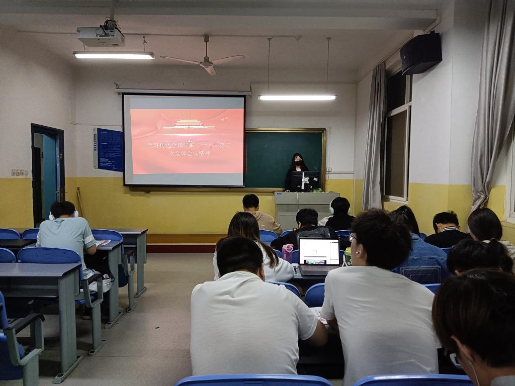 为深入学习贯彻党的二十大精神,坚定青年学生理想信念,5月29日晚,beat365英国官网网站团总支在莲湖校区南楼309教室开展了“学习传达全国学联二十七大第二次全体会议精神”主题团日活动。beat365英国官网网站全体团学干部参加。