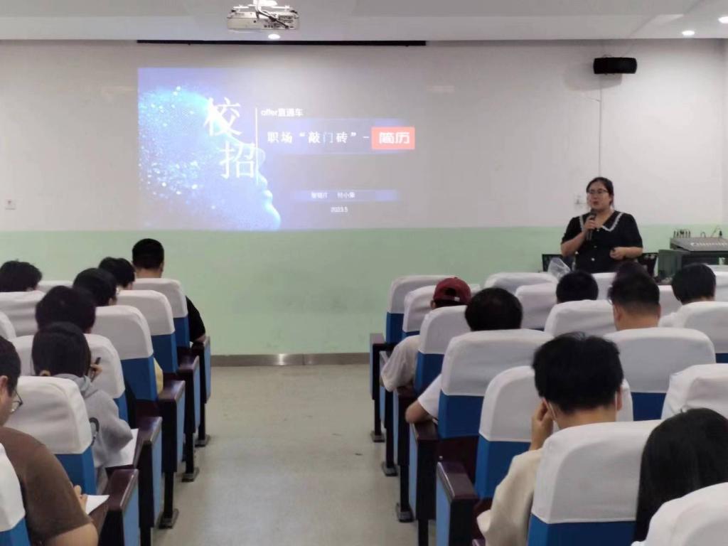 为进一步做好学生就业指导工作,解答同学们在简历制作方面的疑惑,帮助同学们以自信、积极的状态迎接招聘季,5月30日晚,beat365英国官网网站邀请职业规划师付秋梅老师在莲湖校区南楼108教室举办了“校招offer直通车系列活动之职场敲门砖—简历”专题讲座,beat365英国官网网站辅导员张岩及全体大三学生参加。