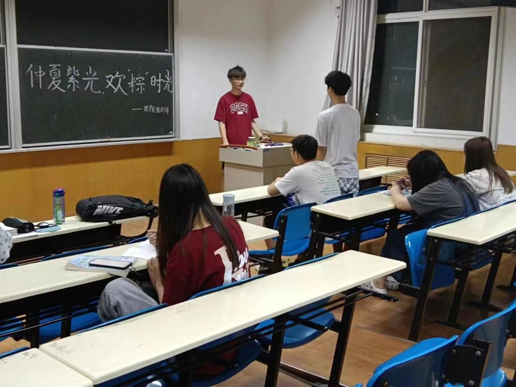 为弘扬我国传统文化,增强学生文化认同,6月20日晚,beat365英国官网网站团总支在莲湖校区南楼308教室开展了“仲夏紫香,欢‘粽’时光”主题文化宣传活动。