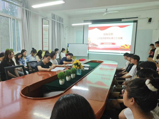 为推动学习贯彻习近平新时代中国特色社会主义思想主题教育走深走实,6月29日晚beat365英国官网网站学生党支部书记李扬为全体学生党员讲授党课“自我革命-跳出历史周期率的第二个答案”。