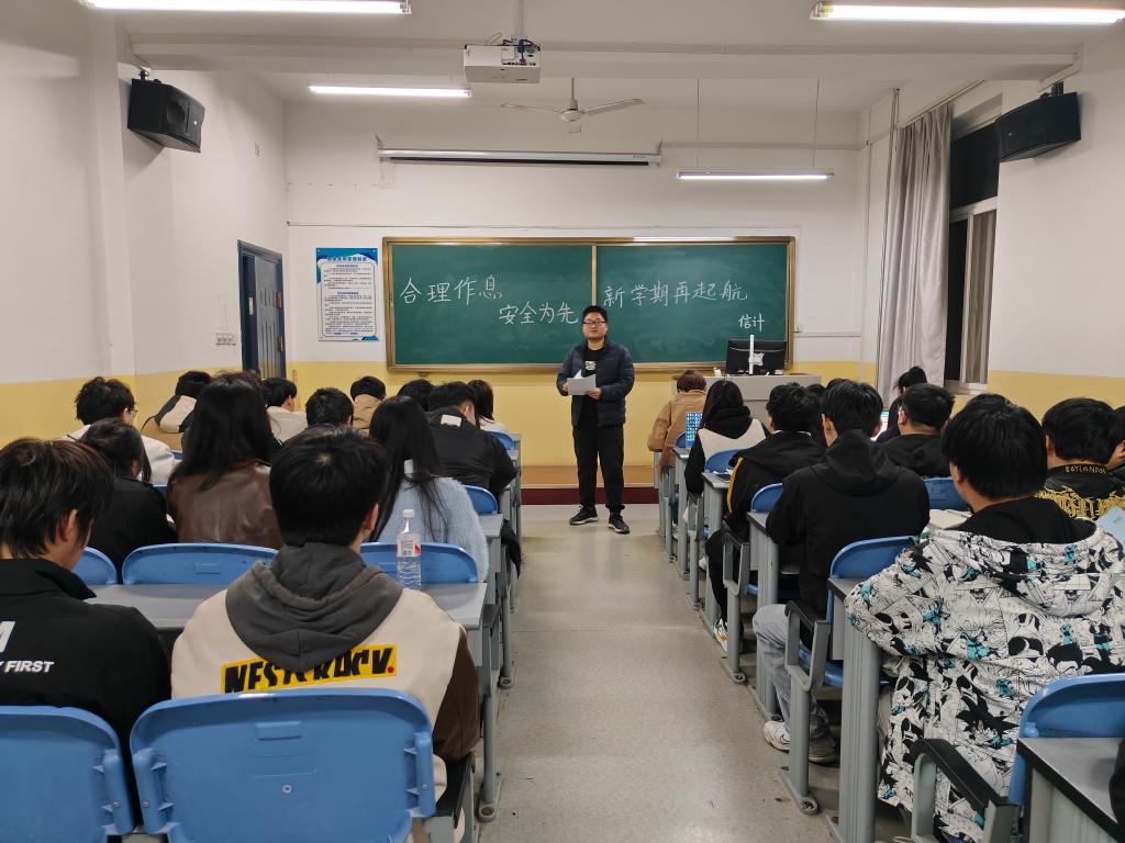 随后辅导员和班主任带领同学们学习了《beat365英国官网网站学生行为规范(试行)》,讲解了宿舍用电规范和防火要求,鼓励同学们养成良好作息习惯,遵守学校日常教学管理要求,课堂上认真听讲,做好教室、宿舍卫生打扫。毕业班辅导员鼓励考研学生及时关注复试信息,未就业学生积极投递简历,早日找到合适的工作。(文/信息计算222倪瑞娴 图/beat365英国官网网站各班级 初审/学工办 张岩 终审/胡红亮)