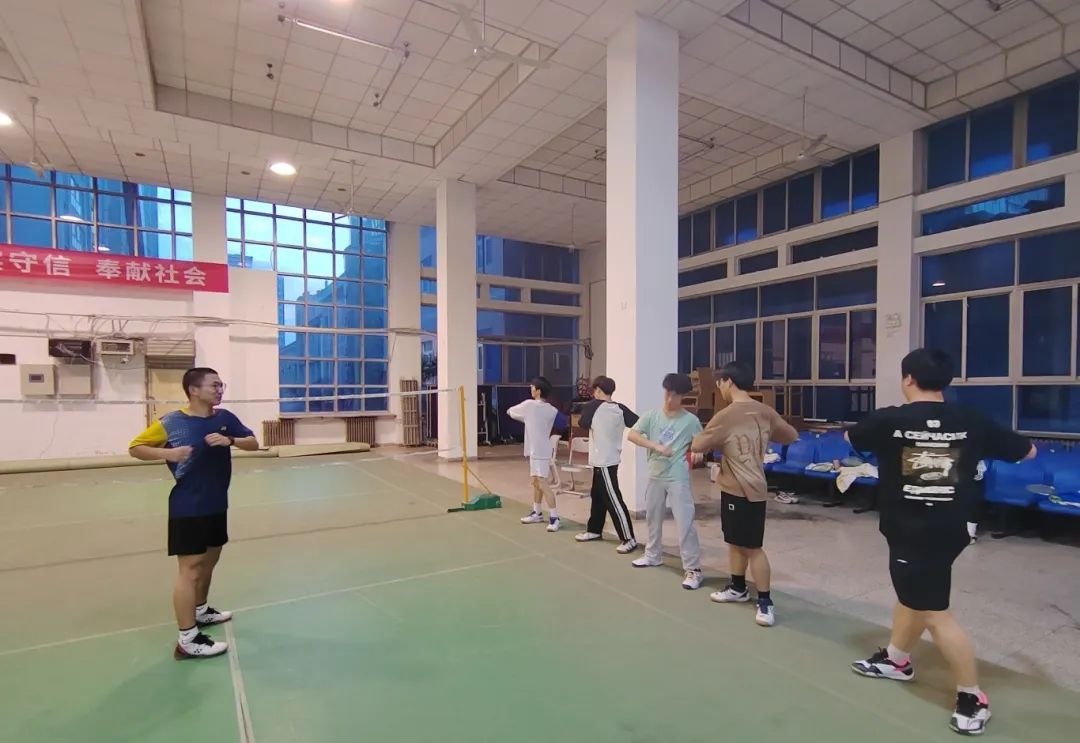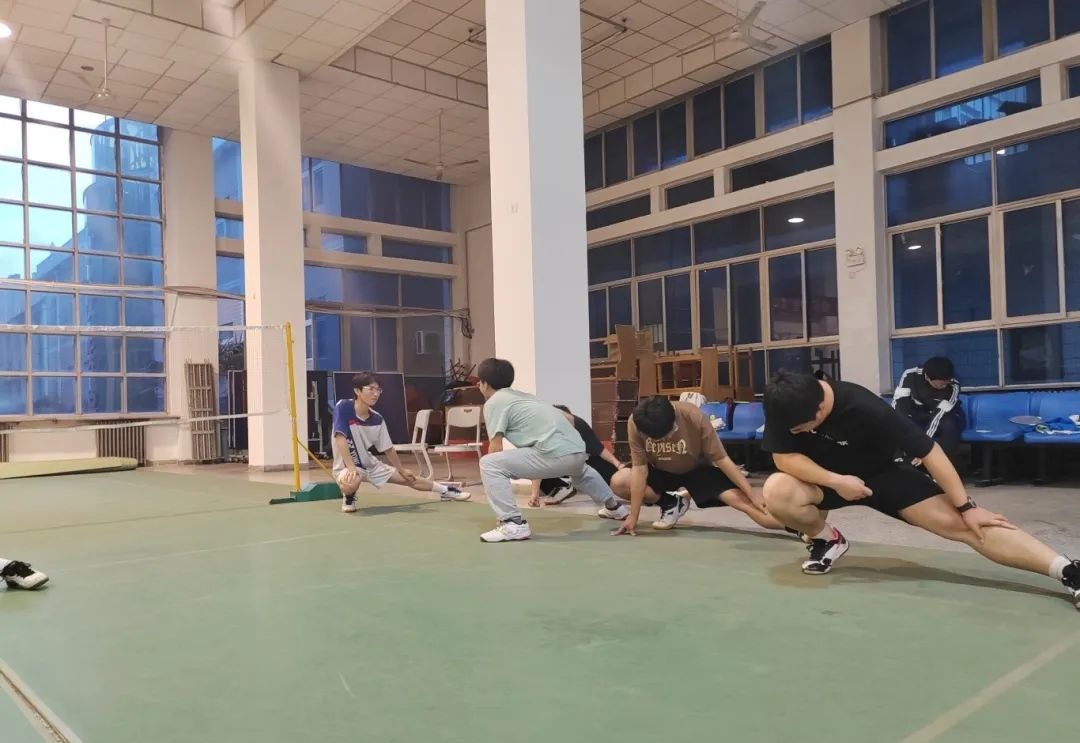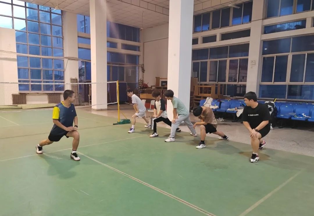 首先由队长带领队员们进行拉伸以及热身活动,确保队员们接下来训练的安全性。经过热身活动后,同学们自行分组,训练各自的项目,每位队员都积极投身于训练中,展示出了拼搏进取、积极向上的精神风貌。同学们之间相互指导,相互纠正,相互鼓励,羽毛球馆里都是同学们挥洒汗水、积极训练的身影。每一位队员都散发着属于自己青春的活力。
