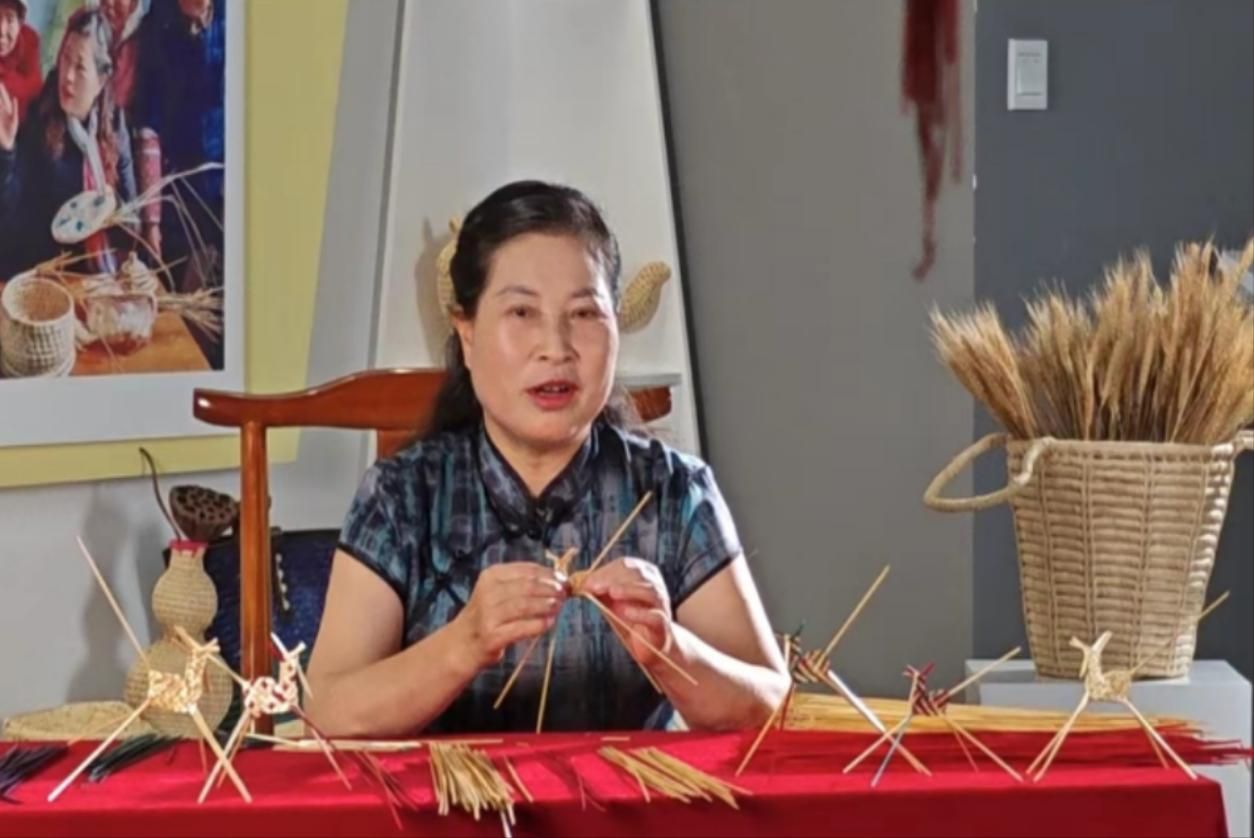 陈春苗老师向实践队成员们详细讲解了草编的历史以及草编从选材、处理、编织到成品的整个制作过程。随后,成员们对陈春苗老师进行了人物专访,详细了解了她与草编结缘的过程,以及她在草编技艺传承与发展中所付出的努力。陈春苗老师说,这门技艺是2002年公公传授给她的,只要是闲暇时间她都会研究制作各种草编工艺品和生活用品。2015年一次偶然机会,她带着他的作品参加了当地的春节大庙会,当天就卖出了4000多块钱她看到了草编的市场价值。然后她带着村里的妇人开始了草编之路,变废为宝,带领着群众增收致富。