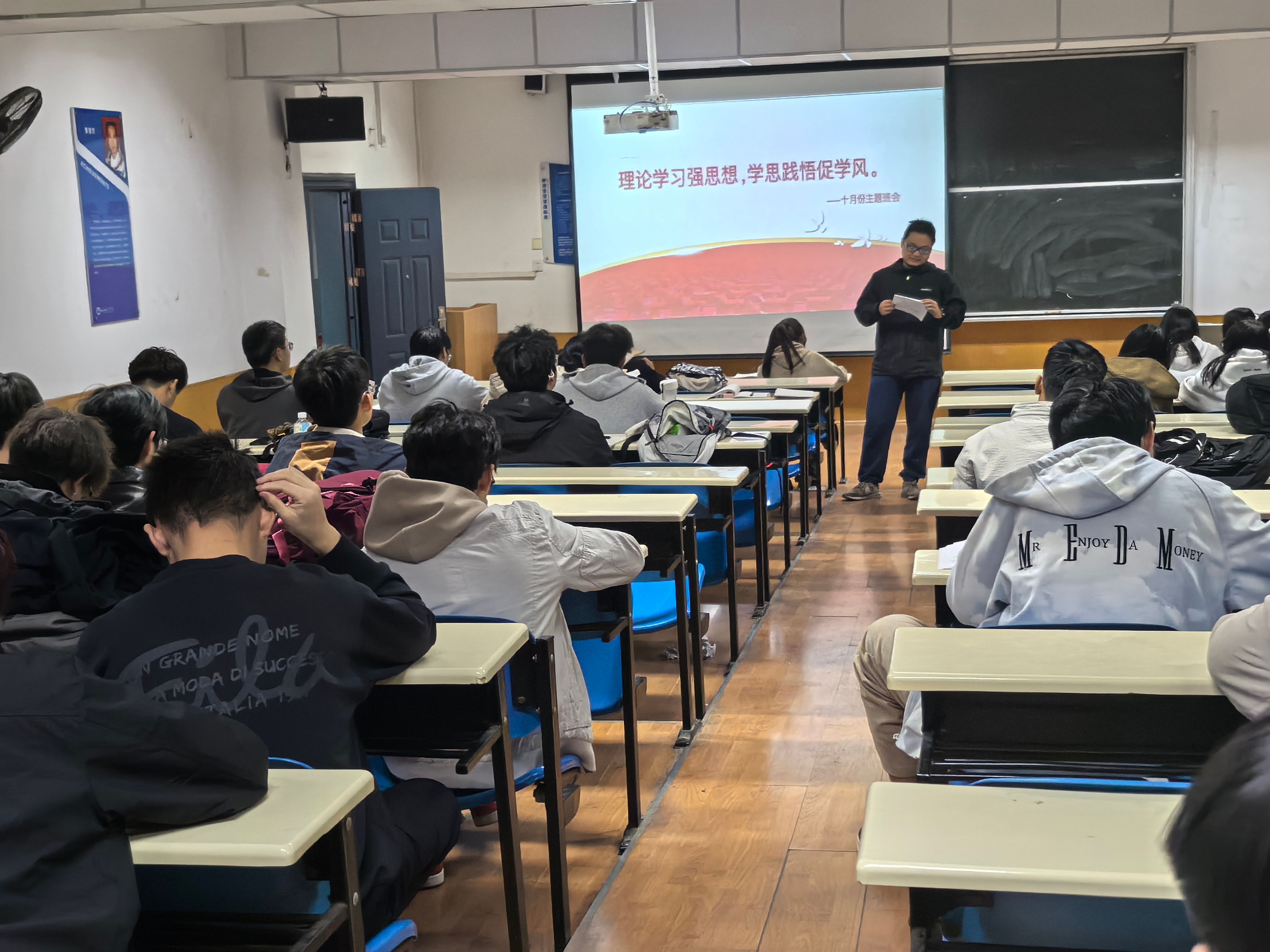 为了深入学习贯彻习近平新时代中国特色社会主义思想和党的二十届三中全会精神,强化学生理想信念教育,培育和践行社会主义核心价值观。按照学生工作部(处)《关于2024年10月主题班会要点》的相关要求,beat365英国官网网站各班级于10月份陆续开展了“理论学习强思想,学思践悟促学风”主题班会。